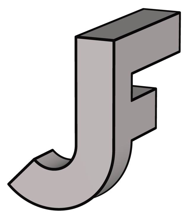 The JF-compound is a 3D object that looks like a 'J' from one angle and an 'F' from another. Because of this it has no symmetries and can be used to unambiguously illustrate 3D transformations.